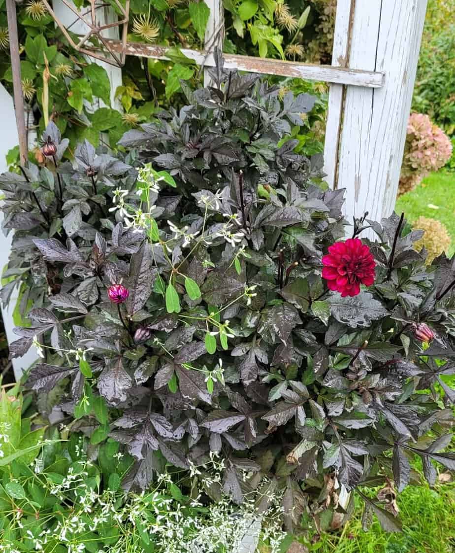 This is a short dahlia so great for containers. The dark purple color is even prettier in person.